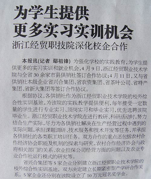 为学生提供更多实习实训机会——浙江经贸职技院深化校企合作