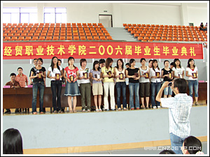 教师代表人文旅游系张俊磊老师和2006届毕业生代表现代物流200302班黄栋同学分别在会上作了发言。会上还宣布了2006届省级、校级优秀毕业生名单,学院领导分别为优秀毕业生颁奖。