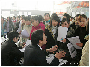 这次招聘会是我院继2005年12月11日举办全省高校毕业生就业招聘会高职专场后的又一次校园招聘盛会。招聘现场挤满了毕业生,许多摊位前人头攒动,场面十分热闹。除我院近2千多毕业生外,还有来自下沙高教园区其它兄弟院校的毕业生,甚至还有来自兰州商学院的毕业生。据不完全统计,参加这次招聘会的学生超过4000人。毕业生们十分珍惜这次供需见面机会,对个人资料和面试的心理都作了精心准备,认真与用人单位洽谈。用人单位对我院2007届毕业生的综合素质评价良好,像宁波三江购物俱乐部等单位就是因为前一年曾聘用我院毕业生,使用情况不错,这次专程来选聘的。同时,用人单位也对我院毕业生在专业技能、人文素养等方面提出了中肯的建议与要求,这为我们的教育教学改革提供了有益的借鉴。