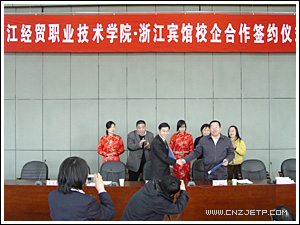 为进一步建立酒店人才培养机制,浙江宾馆从今年初开始对首批招收的我院15名优秀实习生颁发奖学金,并面向我院酒店管理专业长期设立奖学金,鼓励他们更加积极的学习专业技能,促进个人成材。同时,我院聘任浙江宾馆总经理姚云先生担任人文旅游系酒店管理专业建设指导委员会委员兼客座教授,聘任人力资源部总监章璞先生担任实训指导老师。