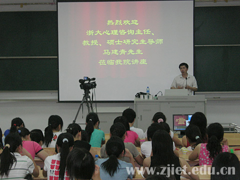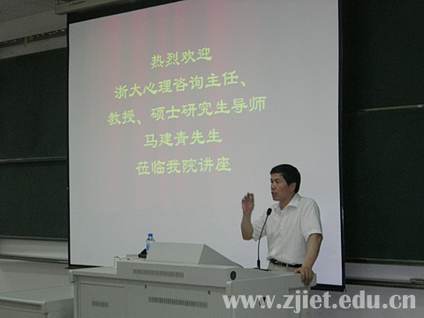 讲座通过多媒体向全院学生直播。马建青教授结合一个个典型事例,阐述了心理健康与人生发展的关系,从生活中的点点滴滴反映出的心理健康问题到如何解决这些问题。马教授幽默的语言、丰富的专业知识及社会经验给同学们留下了深刻印象。