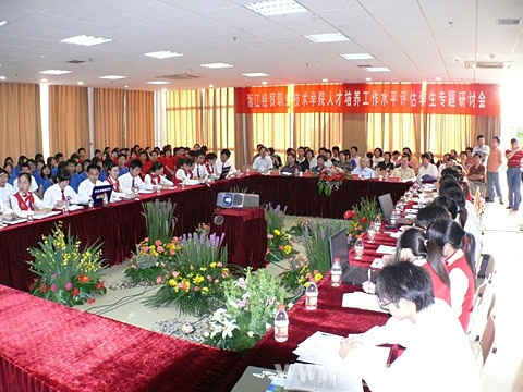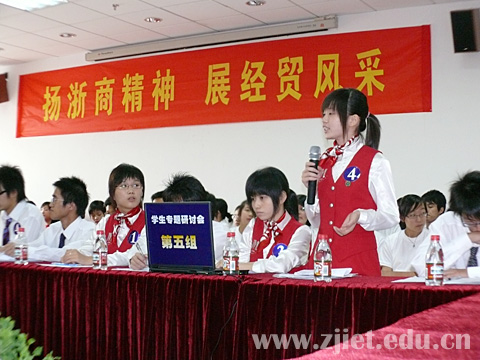 学生专题研讨会是考察学生综合知识和合作协调能力的主题研讨活动,也是评估专家组衡量高职高专院校办学质量的有效方式。本次研讨会以“浙商精神·浙商新人”为主题,来自我院六个系的30名同学分成6组进行研讨。各组学生紧紧围绕主题,分别以《厚德载物,诚信务实》、《敢为人先,做开拓创新的浙商新人》、《富而思进,做可持续发展的经贸人》、《躬行实践,做高素质技能型人才》、《重利尚义,技湛商慧》、《自强不息、以小致大》为分论题,结合学院办学特色,以知名浙商和我院优秀毕业生的动人事例,联系专业技能和自身体会,从不同层面和角度进行了探讨。