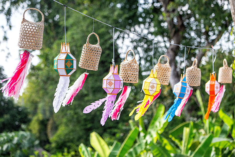 深蓝色背景板上,以泰国传统竹编器皿“插隆”为设计原型的会标格外醒目。蓝、红、绿三色竹条分别代表“开放”“联通”“平衡”,共同组成此次会议的主题。彼此交织的竹条形成21个开口,代表亚太经合组织21个经济体。