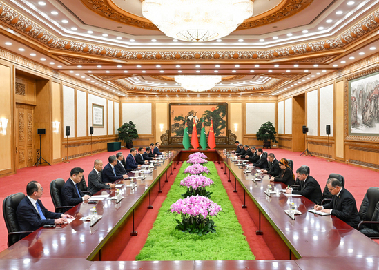 9月2日下午,国家主席习近平在北京人民大会堂会见来华出席2025年上海合作组织峰会和纪念中国人民抗日战争暨世界反法西斯战争胜利80周年活动的土库曼斯坦总统别尔德穆哈梅多夫。